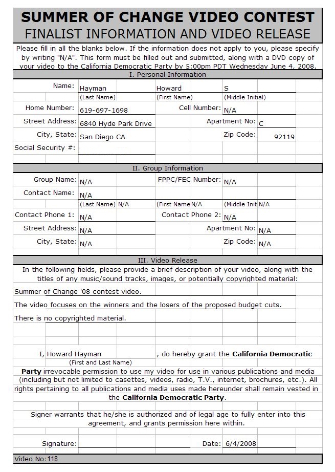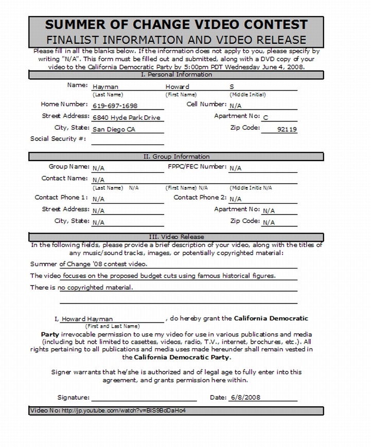 and Video Release Form. 2. DVD of your 30 second video. We need these materials